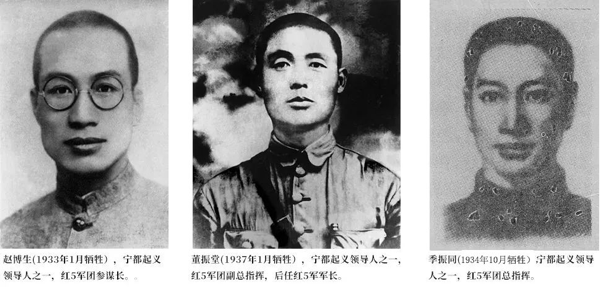 1931年10月,經(jīng)中共中央批準發(fā)展了該軍總指揮部參謀長趙博生在寧都橋背村秘密入黨,并根據(jù)中共中央的指示,秘密進行起義的宣傳和組織工作。