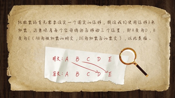 古希臘時(shí)期的“大棍子加密法”、古羅馬時(shí)期的“凱撒位移法”、中國古代的“不成字加密”等。