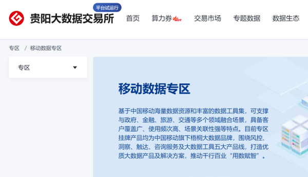 ◎全國首個“移動數(shù)據(jù)專區(qū)”正式上線。3月8日,由貴陽大數(shù)據(jù)交易所等單位聯(lián)合運營的全國首個“移動數(shù)據(jù)專區(qū)”正式上線。