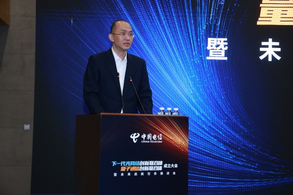 中國(guó)電信副總經(jīng)理李峻在致辭中介紹了中國(guó)電信近年來(lái)在光網(wǎng)絡(luò)和量子通信領(lǐng)域的發(fā)展成果,并圍繞高水平開(kāi)展創(chuàng)新聯(lián)合體工作提出三點(diǎn)倡議:一是強(qiáng)化創(chuàng)新協(xié)同,實(shí)現(xiàn)高水平科技自立自強(qiáng)。希望聯(lián)合體各方以未來(lái)產(chǎn)業(yè)任務(wù)為基礎(chǔ),共同提升協(xié)同創(chuàng)新能力,聚焦突破新型光纖光纜、超大容量長(zhǎng)距離光傳輸系統(tǒng)、多域異構(gòu)QKD組網(wǎng)、QKD與經(jīng)典密碼體系融合等領(lǐng)域關(guān)鍵核心技術(shù),取得一批國(guó)際領(lǐng)先的創(chuàng)新成果,實(shí)現(xiàn)我國(guó)在光網(wǎng)絡(luò)和量子通信領(lǐng)域的領(lǐng)跑。二是推進(jìn)產(chǎn)業(yè)共贏,促進(jìn)高效率科技成果轉(zhuǎn)化。希望聯(lián)合體各方堅(jiān)持需求牽引、市場(chǎng)驅(qū)動(dòng),以應(yīng)用場(chǎng)景和重大工程為抓手,充分發(fā)揮各自優(yōu)勢(shì),共同加快推動(dòng)一批原創(chuàng)性、顛覆性技術(shù)成果的轉(zhuǎn)化和應(yīng)用,爭(zhēng)取盡快取得規(guī)模成效。三是加強(qiáng)生態(tài)合作,培養(yǎng)高質(zhì)量未來(lái)產(chǎn)業(yè)集群。希望聯(lián)合體各方以市場(chǎng)為紐帶和依托,加強(qiáng)在標(biāo)準(zhǔn)、專利、資本等維度的協(xié)同合作,積極參與和融入全球光網(wǎng)絡(luò)和量子通信技術(shù)和產(chǎn)業(yè)的大生態(tài),努力打造一批具有國(guó)際競(jìng)爭(zhēng)力的新型啟航企業(yè)。