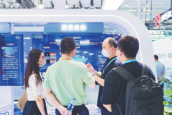 ②中國電信自研安防產(chǎn)品集中亮相2023中國國際社會公共安全產(chǎn)品博覽會。圖為翼安反詐展項。