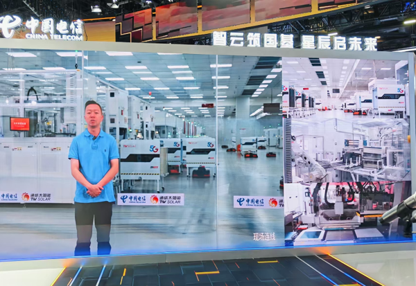 走進(jìn)中國電信展區(qū)內(nèi),一幅星光入懷的景象映入眼簾,最為搶眼的當(dāng)屬“新起點(diǎn)”展區(qū)內(nèi)的8K極高清大屏。在大屏5G實(shí)時(shí)連線畫面中,IGV智能搬運(yùn)小車來回穿梭、機(jī)械臂抓取電池片、智能分揀機(jī)通過拍照識(shí)別圖像……5G超級(jí)工廠通威光伏制造基地的智能生產(chǎn)線躍然眼前。