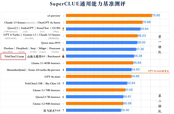在本次參選SuperCLUE10月榜單的43個大模型企業(yè)中,TeleAI是唯一的央企大模型機構(gòu),同時TeleChat2系列大模型是基于全國產(chǎn)化萬卡集群和國產(chǎn)深度學(xué)習(xí)框架訓(xùn)練完成。