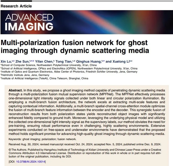 在此研究中,李學(xué)龍教授帶領(lǐng)團(tuán)隊(duì)提出了一種多偏振融合互監(jiān)督網(wǎng)絡(luò)(MPFNet)的關(guān)聯(lián)成像方法,可在多種散射環(huán)境下,利用噪聲調(diào)控技術(shù)高質(zhì)量重建目標(biāo)圖像,為計(jì)算關(guān)聯(lián)成像的涉水成像裝備研發(fā)提供技術(shù)基礎(chǔ)。