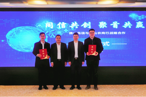 佛山電信副總經(jīng)理徐志峰、佛山農(nóng)商行副行長李雄輝等負(fù)責(zé)同志出席簽約儀式。