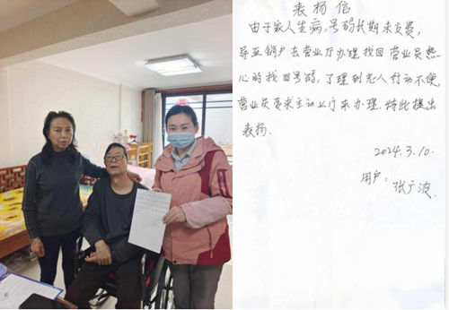 3月10日,河北秦皇島電信山海關(guān)西順城營(yíng)業(yè)廳營(yíng)業(yè)員憑借暖心服務(wù)獲用戶感謝信。用戶進(jìn)廳咨詢號(hào)碼無(wú)法使用原因,經(jīng)系統(tǒng)查詢,是因長(zhǎng)期未交費(fèi)導(dǎo)致號(hào)碼強(qiáng)拆。用戶解釋道由于父親生病手術(shù),忽略了手機(jī)繳費(fèi),現(xiàn)在病情好轉(zhuǎn),號(hào)碼想繼續(xù)使用。營(yíng)業(yè)員得知此情況后,熱心幫助用戶找回號(hào)碼,并主動(dòng)請(qǐng)求上門辦理,辦理完畢后幫用戶登錄微信,支付寶等APP,得到了用戶的高度認(rèn)可。