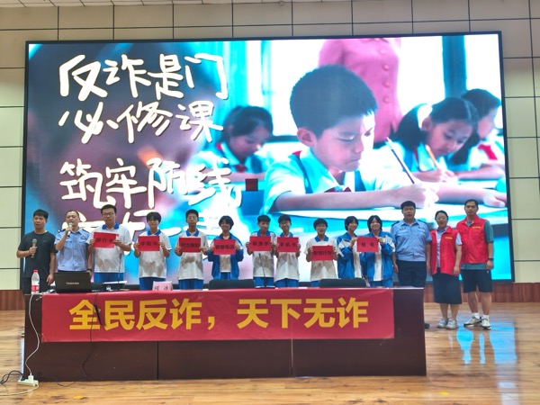 為加深學(xué)生們防詐騙知識(shí)印象,電信反詐工作人員發(fā)放圖文并茂的反詐單頁(yè),贈(zèng)送印有反詐標(biāo)語(yǔ)的小折扇,還準(zhǔn)備了“好孩子、愛(ài)祖國(guó)”徽章、胸針作為紀(jì)念禮品,電信線上主播實(shí)時(shí)與線上網(wǎng)友交流反詐知識(shí),以寓教于樂(lè)的形式,既傳遞了反詐知識(shí),也激發(fā)了大家的愛(ài)國(guó)熱情,受到老師和學(xué)生們的廣泛歡迎。