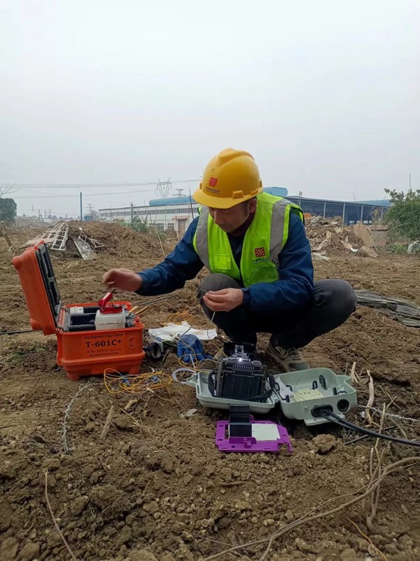 湖北通服孝感公司孝南綜合化維護(hù)人員半蹲在土坡上進(jìn)行通信搶修,在千頭萬(wàn)緒中輕松“拿捏”故障線路是一線通服人的看家本領(lǐng)。