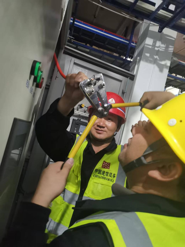 機(jī)房整治施工現(xiàn)場(chǎng),為保證機(jī)房設(shè)備運(yùn)行順暢,貴州通服遵義公司施工人員日夜堅(jiān)守在第一線,完成施工任務(wù)。