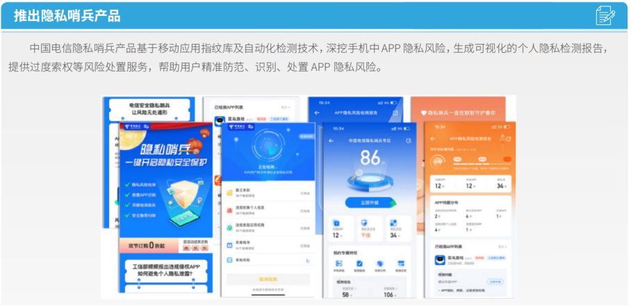 中國電信積極落實《中華人民共和國數(shù)據(jù)安全法》《中華人民共和國個人信息保護法》等法律法規(guī)要求,完善《中國電信用戶個人信息保護管理辦法》,保障用戶個人信息處理活動中的安全和權(quán)益,深入推動APP侵害用戶權(quán)益治理工作,積極探索分場景用戶個人信息保護能力,建立企業(yè)重要數(shù)據(jù)和核心數(shù)據(jù)目錄,提升風(fēng)險自主發(fā)現(xiàn)能力,數(shù)據(jù)安全風(fēng)險自發(fā)現(xiàn)率達(dá)到99.9%。積極開展個人信息保護行動,研發(fā)個人信息保護相關(guān)功能產(chǎn)品,切實做好用戶個人信息保護服務(wù)。