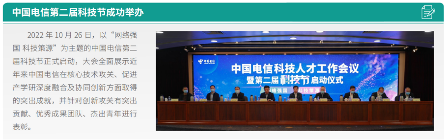 中國電信不斷完善科技創(chuàng)新體系,全面完成基礎(chǔ)研究 (RESEARCH,以下簡稱R)、應(yīng)用技術(shù)研發(fā) (DEVELOPMENT,以下簡稱D)和運(yùn)營式開發(fā)(OPERATION,以下簡稱O)研發(fā)體系布局,建立產(chǎn)學(xué)研深度融合的創(chuàng)新體系,不斷增強(qiáng)自主創(chuàng)新能力,2022年被國務(wù)院國資委授予“科技創(chuàng)新突出貢獻(xiàn)企業(yè)”。在R領(lǐng)域,部署重點(diǎn)課題、創(chuàng)新 探索項(xiàng)目,扎根應(yīng)用基礎(chǔ)研究和前沿技術(shù)。在D領(lǐng)域,構(gòu)建內(nèi)部研發(fā)鏈,由鏈長單位牽頭整合上下游,圍繞關(guān)鍵核心技術(shù)集中攻關(guān)。在O領(lǐng)域,優(yōu)化成果轉(zhuǎn)化流程,加大運(yùn)營開發(fā)人員轉(zhuǎn)型力度,推進(jìn)成果規(guī)模應(yīng)用。不斷優(yōu)化研發(fā)管理投入結(jié) 構(gòu),健全科研激勵機(jī)制。引進(jìn)拔尖人才,建立首席專家提名池,新聘和續(xù)聘首席專家15人,領(lǐng)銜重大攻關(guān)工程。制定技 術(shù)總師制,豐富科技創(chuàng)新專項(xiàng)榮譽(yù)獎勵,表彰取得重大創(chuàng)新成果的個人和團(tuán)隊(duì)??萍紕?chuàng)新組織體系化,營造良好科技創(chuàng)新 氛圍,打造科創(chuàng)宣傳名片,在中國電信科學(xué)技術(shù)協(xié)會的帶領(lǐng)下,45個中國電信科學(xué)技術(shù)協(xié)會分會已組建成立。成功舉辦 中國電信第二屆科技節(jié),入選全國科普日活動優(yōu)秀組織單位。