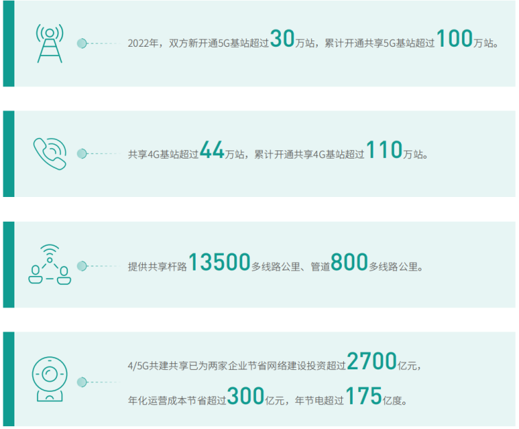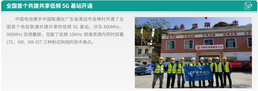 中國電信全面深化與中國聯(lián)通共建共享合作,減少4/5G基站重復(fù)建設(shè),大幅提升已建基站利用率,保護(hù)自然環(huán)境和景觀,節(jié)約土地、能源和原材料的消耗,并持續(xù)深化桿路、管道、光纜等基礎(chǔ)設(shè)施共建共享。