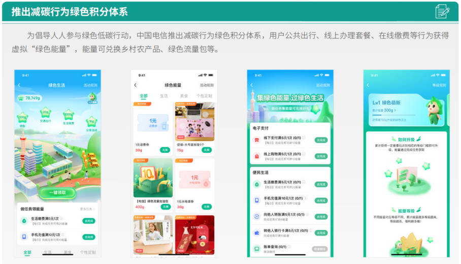 在國家“雙碳”目標(biāo)指引下,中國電信積極推進(jìn)低碳運(yùn)營,通過建設(shè)綠色云網(wǎng)、推進(jìn)綠色辦公、綠色采購、回收循環(huán)、優(yōu)化能源結(jié)構(gòu)等方式,多措并舉加大節(jié)能降碳力度。