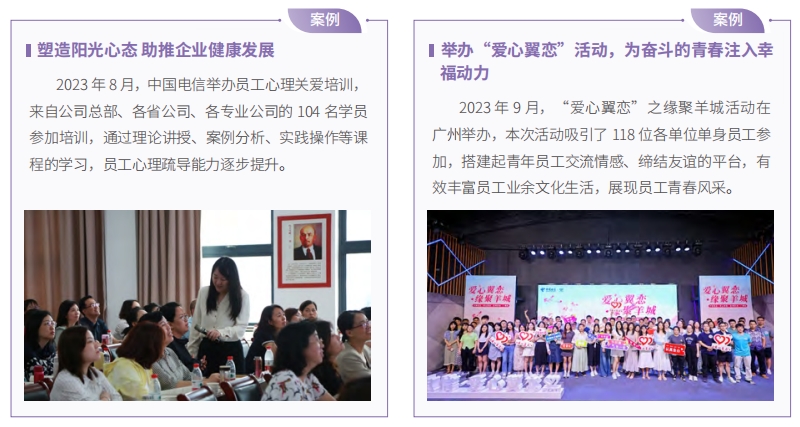 中國電信依法保護員工權(quán)益,打造全方位員工關(guān)愛體系,持續(xù)健全制度保障,為員工打造職業(yè)發(fā)展通道,攜手共創(chuàng)員工之家。