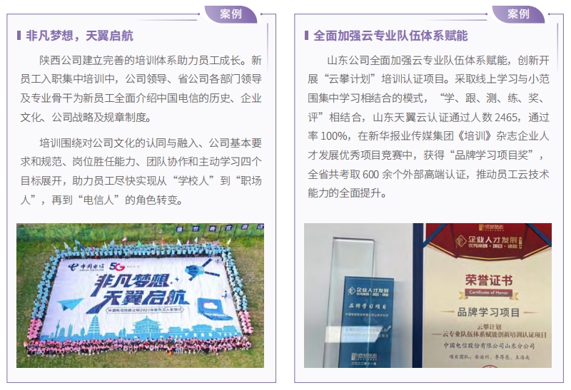 開展勞動和技能競賽。以“云改數(shù)轉(zhuǎn)我爭先”為主題,開展面向全員的勞動、技能競賽,覆蓋多個專業(yè)領(lǐng)域和技能賽道,超過 20 萬人次參加競賽,以賽促訓(xùn)提升員工技能。
