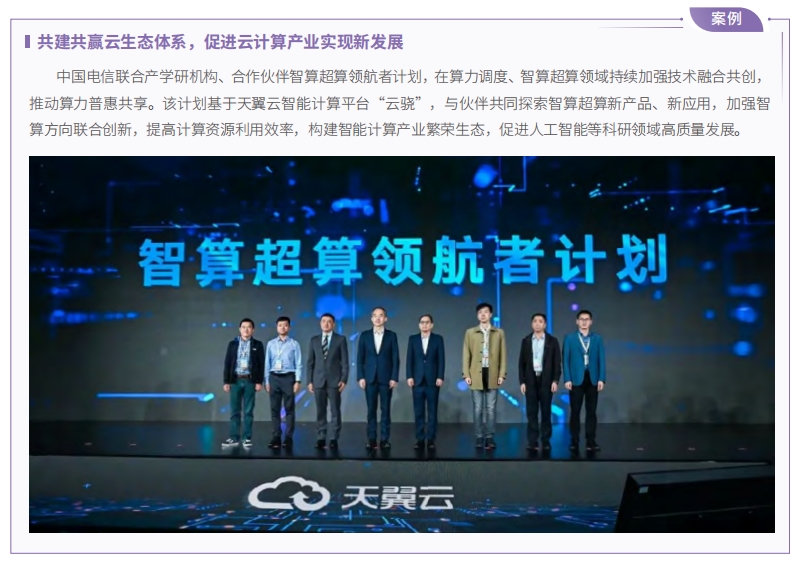 在第六屆數(shù)字中國建設(shè)峰會·云生態(tài)大會上啟動天翼云算力分發(fā)網(wǎng)絡(luò)平臺“息壤”生態(tài)合作計劃、智算超算領(lǐng)航者計劃、央企 SaaS(Software as a Service,軟件即服務(wù) ) 生態(tài)共同體計劃,并為最佳實踐合作伙伴、最具潛力合作伙伴授牌,攜手伙伴筑牢數(shù)字中國建設(shè)的國云底座。