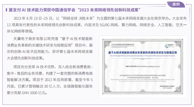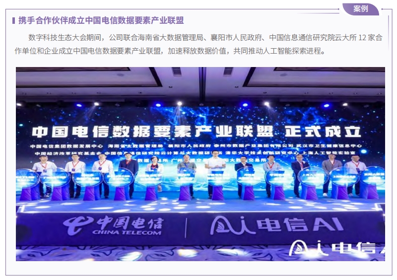 中國電信積極探索“云網(wǎng)智”融合技術(shù),以“網(wǎng)絡(luò) + 云計算 +AI+ 應(yīng)用”模式,助力政府、企業(yè)加快數(shù)字化轉(zhuǎn)型升級。數(shù)字科技生態(tài)大會作為展現(xiàn)數(shù)字科技發(fā)展成果及與各界共同探索發(fā)展方向的重要平臺,全方位展現(xiàn)公司及生態(tài)合作伙伴在云網(wǎng)融合基礎(chǔ)能力、數(shù)字新消費、產(chǎn)業(yè)數(shù)字化、智能電子、人工智能大模型等方面的最新成果,積極發(fā)揮產(chǎn)業(yè)協(xié)同效應(yīng),建設(shè)產(chǎn)業(yè)聯(lián)盟,以生態(tài)繁榮開創(chuàng)數(shù)字科技建設(shè)新局面。