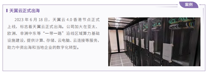 中國電信大力推進天翼云國際化,打造覆蓋全球主要熱點區(qū)域高速互聯(lián)智能云網(wǎng)體系,與全球主流公有云多節(jié)點高速互聯(lián)。憑借專業(yè)的信息服務(wù)能力和云網(wǎng)融合技術(shù)優(yōu)勢,匹配海外當(dāng)?shù)財?shù)字化應(yīng)用場景,融入智慧系列方案,助力海外客戶數(shù)字化轉(zhuǎn)型升級,為當(dāng)?shù)財?shù)字經(jīng)濟建設(shè)、社會進步及民生改善作出積極貢獻。