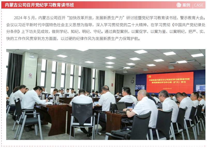 一體推進原原本本學《條例》、警示教育、解讀培訓,全集團舉辦讀書班近千期、講授專題黨課 1.6 萬余次、開展學習研討 5.9 萬余次、警示教育 1,800 余次,黨員干部遵規(guī)守紀意識顯著增強。組建“百人黨紀宣講團”、編寫《百案說紀》、開展“雙百行動”,在中央企業(yè)總結大會上獲表揚。印發(fā)黨紀學習教育常態(tài)化長效化通知,推動紀律建設融入日常、抓在經常。