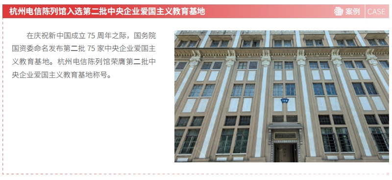 大力弘揚紅色電信精神,制作發(fā)布紅色電信精神精品課件,將其納入日常教育培訓,作為新員工入職“第一課”、員工培訓“必修課”、黨員干部學習“常修課”。組建紅色電信精神宣講團,推動設立紅色電信講堂 80 余個,舉辦宣講活動 580 余場,覆蓋 10 萬人次,讓員工成為文化建設的參與者、企業(yè)故事的講述者。開展“深入踐行紅色電信精神”微視頻評選展播,3 部作品被國務院國資委評為優(yōu)秀作品。深入挖掘紅色電信資源,推出首批紅色電信教育基地 20 個,推薦杭州電信陳列館入選第二批中央企業(yè)愛國主義教育基地名錄。