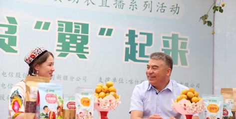 中國電信利用天虎云商,打造電商扶貧新模式。圖為 2020 年 6 月,中國電信派駐疏附縣副縣長熱夏提 - 阿布力米提在消費(fèi)扶貧助農(nóng)直播現(xiàn)場