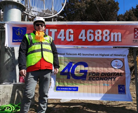 2020 年 3 月 4 日,中國通服國際公司張長征在尼泊爾珠峰附近參加雪山直升機(jī)站點開通儀式