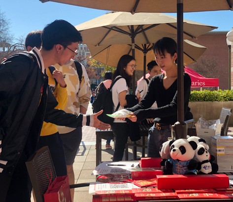 2020 年 3 月 18 日,中國電信美洲公司在南加州大學(xué) IV 圖書館前派發(fā)口罩