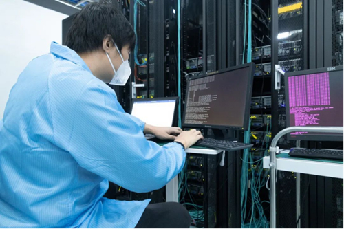 跟著劉博士的腳踏車,記者來(lái)到了實(shí)驗(yàn)機(jī)房。轟鳴的噪聲和機(jī)架的熱浪中,研發(fā)人員鄭超正在緊張工作,他指向一排機(jī)柜說(shuō):“這是一個(gè)全閃存儲(chǔ)項(xiàng)目,正在進(jìn)行上線前的業(yè)務(wù)測(cè)試。”據(jù)介紹,依托中國(guó)電信研究院實(shí)驗(yàn)環(huán)境,云網(wǎng)融合大科學(xué)裝置提供了天翼云仿真適配平臺(tái)和業(yè)界首個(gè)NFV三層解耦網(wǎng)絡(luò)云實(shí)驗(yàn)平臺(tái),能夠開(kāi)展5GC解耦測(cè)試、信創(chuàng)云適配、云計(jì)算新技術(shù)研究等大規(guī)模仿真驗(yàn)證實(shí)驗(yàn)。