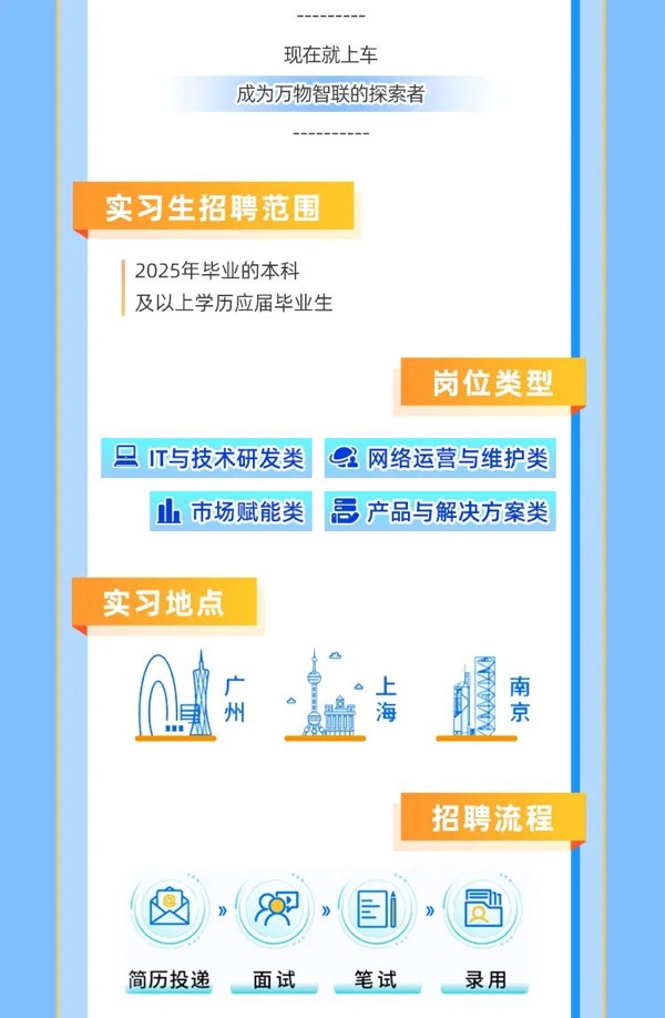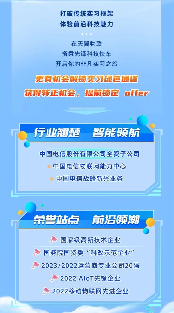 中國(guó)電信天翼物聯(lián)2025屆實(shí)習(xí)生校園招聘啟動(dòng)