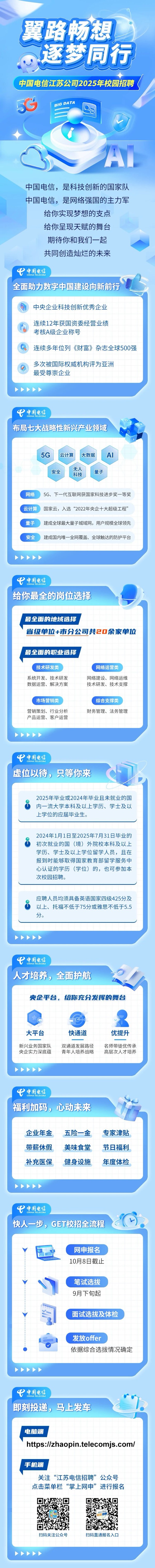 中國(guó)電信江蘇公司2025校園招聘火熱進(jìn)行中!